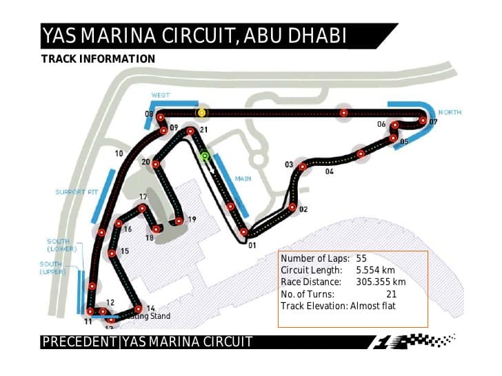 Spanning 5,554kms, and covering 21 corners and turns twist through Yas Island off the Abu Dhabi coast, passing by the Marina and through the Yas Hotel Abu Dhabi, and winding its way through sand dunes, with several long straights and tight corners.